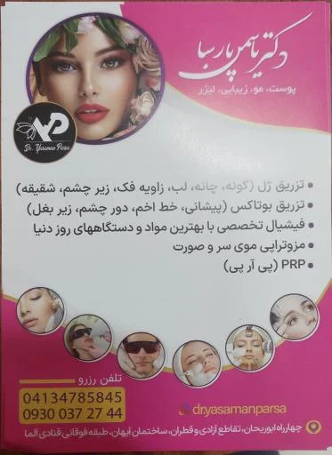 مطب زیبایی دکتر یاسمن پارسا، متخصص پوست، مو و لیزر واقع در چهارراه ابوریحان.