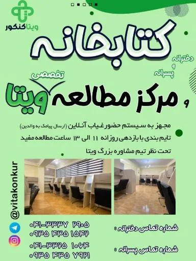 کتابخانه و مرکز مطالعه ویتا واقع در خیابان رضانژاد جنوبی، دارای بخش دخترانه و پسرانه