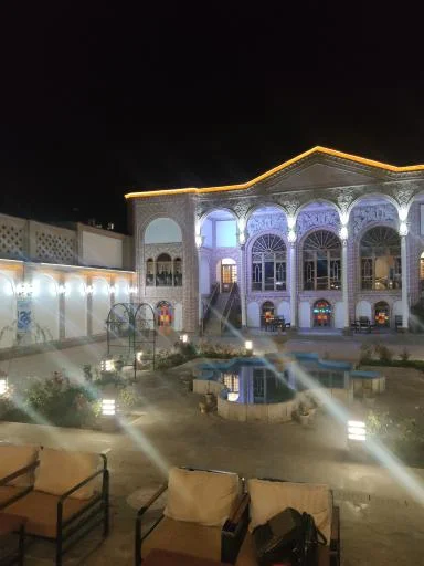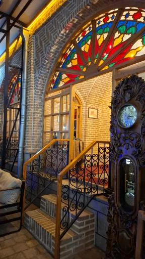 کافه در بوتیک هتل عمارت سرخهای (عمارت تاریخی دوره قاجار). نوشیدنیهای حرفهای و کیک در فضایی تاریخی.